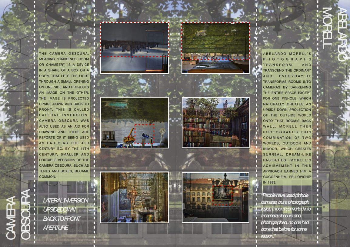 During this project i created my own camera obscura from a Pringles tube and converted the college darkroom into a large scale camera obscura. I also conducted research on photographers and artists, Abelardo Morell and Vera Lutter and their work with camera obscuras.